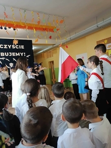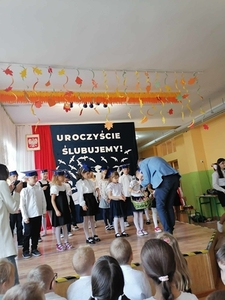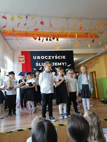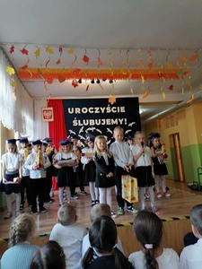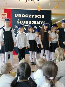 Nasi starsi koledzy z klasy I przeżyli niezwykłą uroczystość, jaką jest ślubowanie. Celem tej uroczystości zapoznanie z prawami i obowiązkami ucznia. Z udziałem Dyrekcji Szkoły, zaproszonych gości i rodziców, uczniowie klas pierwszych zostali włączeni w poczet społeczności uczniowskiej. Uroczystość na którą zostały zaproszone dzieci z grupy Motylki wszystkim bardzo się podobała. Pierwszaki otrzymały dużo upominków, również od przedszkolaków.