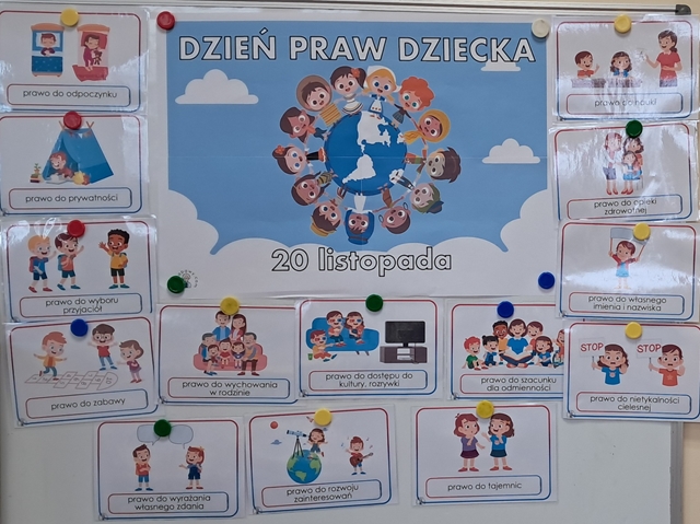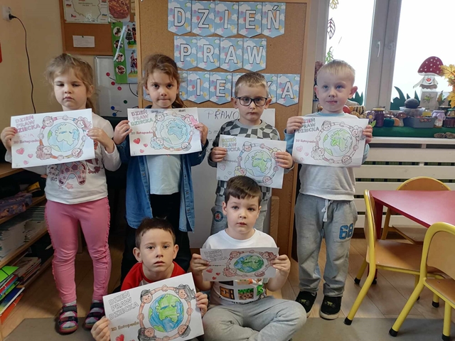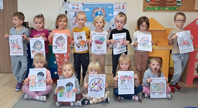 Międzynarodowy Dzień Praw Dziecka w naszym przedszkolu odbył się 20 listopada. W grupach  zostały  przeprowadzone  zajęcia o prawach dziecka z wykorzystaniem ciekawych materiałów edukacyjnych oraz  odbyły się rozmowy na temat praw dzieci. Została wyświetlona prezentacja, pt. „Prawa dziecka ”. Dzieci kolorowały ilustracje z wybranymi przez siebie prawami oraz ilustrowały ruchem wybrane prawa.