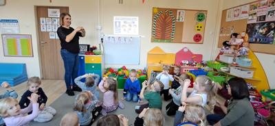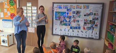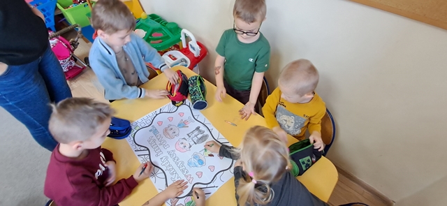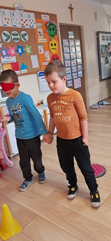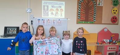 Dnia 3 grudnia 2024 roku obchodziliśmy w przedszkolu Międzynarodowy Dzień Osób Niepełnosprawnych. Przedszkolaki dowiedziały się, z jakimi problemami zmagają się dzieci i dorośli z różnymi niepełnosprawnościami m.in. niewidomi, niesłyszący, niepełnosprawni ruchowo. Przedszkolaki z wielkim zaangażowaniem wykonywały zadania np.: zrozumienie słów przy zasłoniętych uszach, wyjęcie monet z oleju. Dużą trudność sprawiło dzieciom pokonanie toru przeszkód z zawiązanymi oczami, bazując jedynie na wskazówkach kolegi czy koleżanki. Dzieci z grupy Pszczółki w zespołach kolorowały plakaty. W grupie Motylki mama Natalki pokazała jak się miga. Dzięki takim doświadczeniom przedszkolaki wiedzą, z jakimi trudnościami na co dzień borykają się osoby niepełnosprawne, jak ważna jest ich akceptacja i tolerancja.