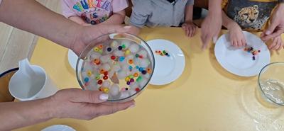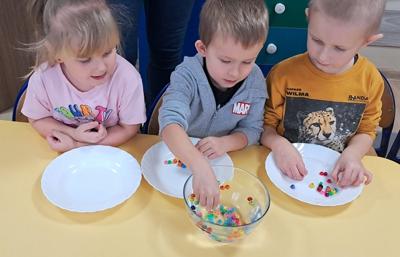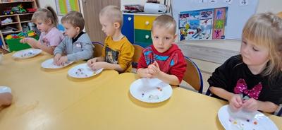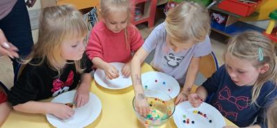 W środę 11 grudnia przedszkolaki z grupy Pszczółki wykonały III zadanie Ciepło - zimno w ramach Ogólnopolskiego Projektu Edukacyjnego Gramy zmysłami. Bawiły się w poławiaczy pereł. Dzieci wydobywały koraliki zamrożone w kostkach lodu. Dowiedziały się, dlaczego lód trzymany w dłoniach rozpuszcza się oraz, że kostki lodu szybciej rozpuszczą się kiedy zanurzymy je w ciepłej wodzie.