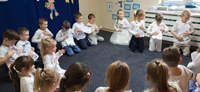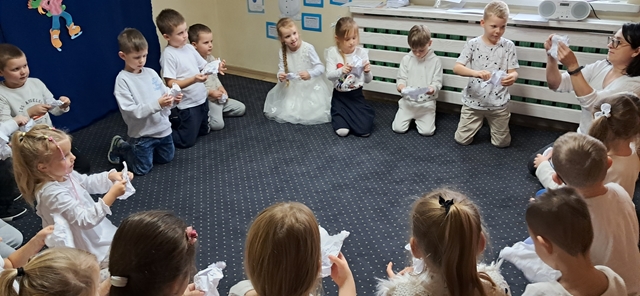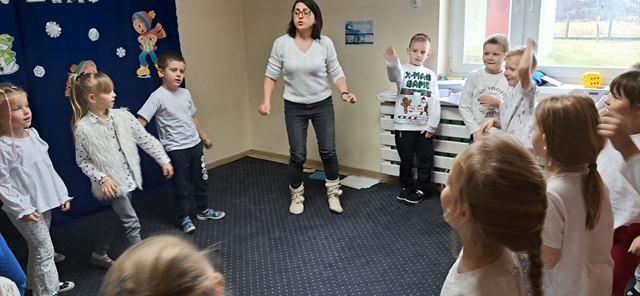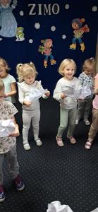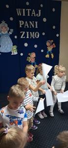 Hura… już zima szkoda tylko, że nie ma śniegu. Jednak to nie przeszkadzało przedszkolakom powitać Panią Zimę. W piątek 20 grudnia bałwanek Śmieszny Panek opowiedział dzieciom o cechach charakterystycznych dla zimy, przedstawił kilka ciekawostek o nowej porze roku. Dzieci bawiły się przy muzyce, rozwiązywały zagadki, słuchały opowiadania o lepieniu bałwana. Była nawet bitwa na papierowe śnieżki. Na koniec każda grupa otrzymała dyplom na pamiątkę tego dnia.
