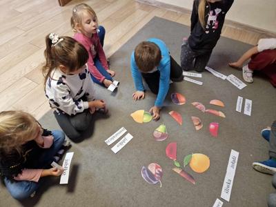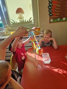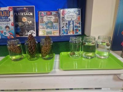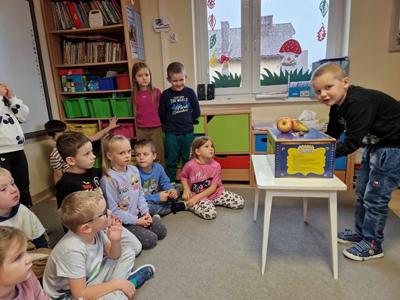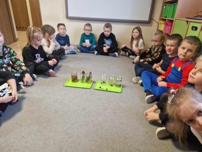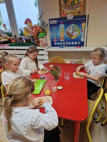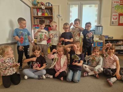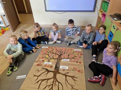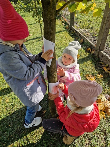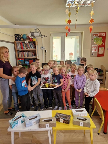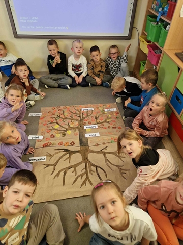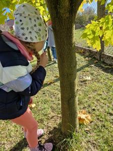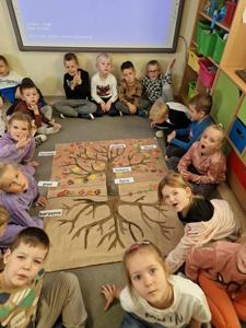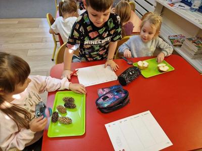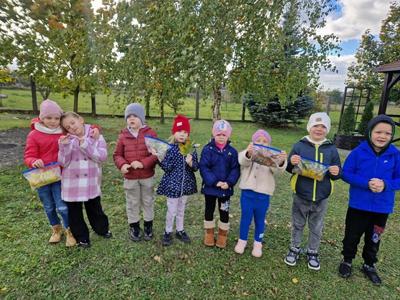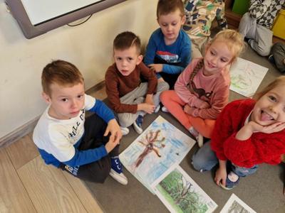 Pierwszy etap programu związany z drzewami już za nami. Na początku naszych zajęć dzieci nauczyły się piosenki ,,Mali Wielcy Odkrywcy” wraz z układem ruchowym. Motylki poznały gatunki oraz budowę drzew. Dowiedziały się, co ludziom i zwierzętom dają drzewa. Świetnie bawiły się podczas odbijania wzorów kory różnych gatunków drzew za pomocą frotażu. Przedszkolaki wybrały się na spacer badawczy na plac przedszkolny i szkolny, gdzie oglądały drzewa przez lupę oraz zbierały dary jesieni. Dużo radości przyniosły naszym przedszkolakom zabawy sensoryczne, w których poprzez dotyk rozpoznawały materiał przyrodniczy oraz owoce pochodzące z drzew. Grały też na instrumentach muzycznych zrobionych z drewna. Super zabawą okazały się prace plastyczne ,,Pachnące obrazki” , ,,Zapachowe drzewko” i praca techniczna ,,Grające drzewo”. Na zajęciach dzieci wykonały doświadczenia dzięki, którym dowiedziały się co to jest fotosynteza, chlorofil oraz co jest najlepszym "nośnikiem" zapachu - woda, oliwa czy sól.