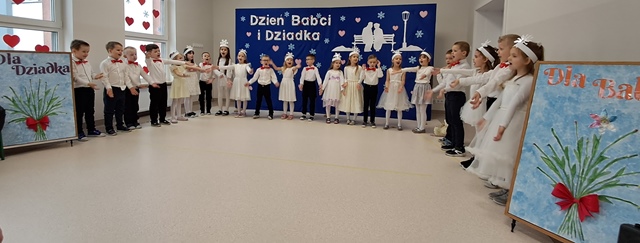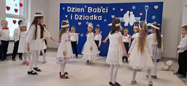 Babcia i Dziadek to słowa, które każdemu dziecku kojarzą się z ciepłem, miłością i wszystkim, co dobre. Dlatego 14 lutego dzieci z grupy Motylki gościły swoje Babcie oraz Dziadków na uroczystości z okazji ich święta. Licznie przybyli goście Babcie i Dziadkowie, mieli okazję podziwiać swoje wnuczęta w specjalnie dla nich przygotowanym programie artystycznym. Były wiersze, piosenki i tańce. Wszyscy z dumą, a nawet łezką w oku patrzyli na wnuczęta i gromkimi brawami dziękowali im za występ. Po części artystycznej dzieci wręczyły gościom własnoręcznie wykonane prezenty. Zaprosiły do wspólnej zabawy i na słodki poczęstunek, który przygotowali rodzice.