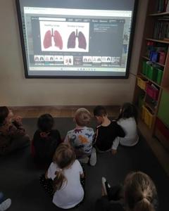 Zajęcia realizowane były w różnych formach aktywności dzieci. Przedszkolaki wykonywały rysunki, których celem było uświadomienie szkodliwości dymu papierosowego, były na wycieczce i obserwowały jakie są inne źródła dymu, o których opowiadały po przyjściu do przedszkola. Wykonywały, ćwiczenia oddechowe i relaksacyjne przy akompaniamencie muzycznym, uświadamiające, że oddychanie świeżym powietrzem jest zdrowe. Naśladowały zachowanie osób niepalących i palących. Projektowały własne znaczki zakazu mówiące o szkodliwości palenia papierosów, uczyły się ,,Piosenki o Dinku”. Zajęciom towarzyszył dinozaur Dinuś, który pomagał dzieciom w rozwiązywaniu zadań. W ramach podsumowania naszych zajęć, dzieci wspólnie z rodzicami wykonały plakaty, które wzięły udział w naszym grupowym konkursie. Dzieci opowiadały o swoich plakatach, a następnie przyznawały im punkty. Wszystkie prace zostały nagrodzone. Bardzo dziękujemy dzieciom i ich rodzicom za tak pięknie wykonane prace.
