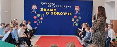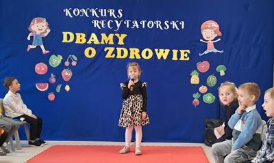 We wtorek 11 marca w naszym przedszkolu odbył się konkurs recytatorski "Dbamy o zdrowie". W konkursie wzięły udział chętne dzieci z obu grup. Wybranie trzech pierwszych miejsc w trzech kategoriach wiekowych było nie lada wyzwaniem dla jury, ponieważ wszystkie przedszkolaki reprezentowały naprawdę wysoki poziom. Poza upominkami za trzy pierwsze miejsca, każdy uczestnik dostał dyplom i nagrodę za udział w konkursie.