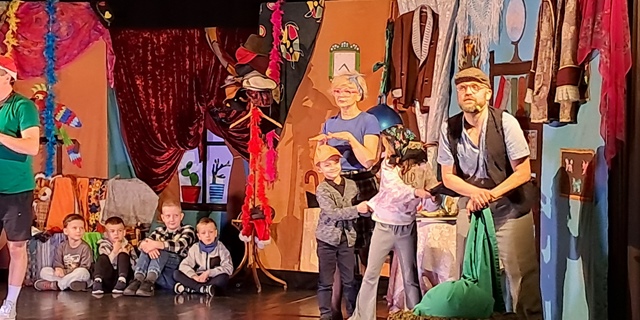 26 marca przedszkolaki były w Centrum Kultury w Jędrzejowie na spektaklu teatralnym pt. "Szalone bajeczki z dziadunia teczki". W przedstawieniu dziadek, wraz z wnukami opowiadał dzieciom różne bajki. Mali widzowie wysłuchali m. in. wierszy "Kłamczucha", "Samochwała" Jana Brzechwy oraz "Okulary" i "Rzepka" Juliana Tuwima. Do ostatniego utworu na scenę zostały zaproszone dzieci. Przedszkolaki aktywnie uczestniczyły w teatrzyku prowadząc dialog aktorami i recytując z aktorami fragmenty wierszy.