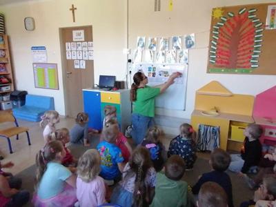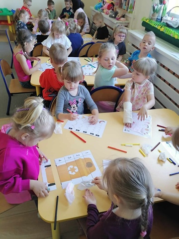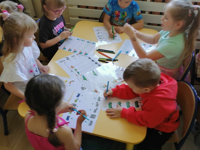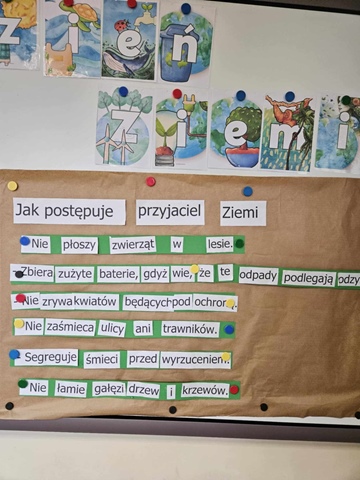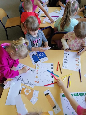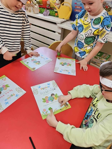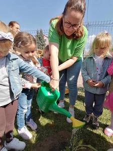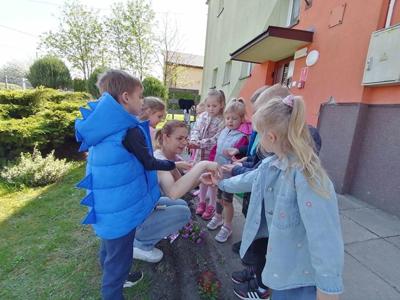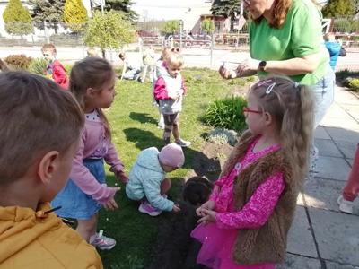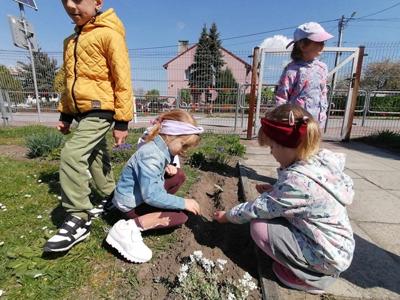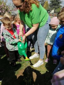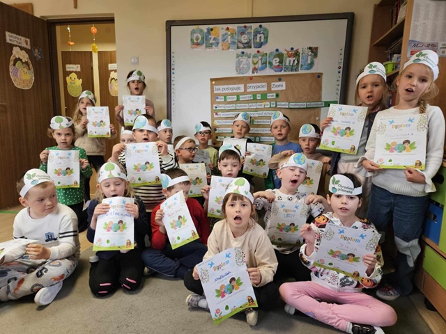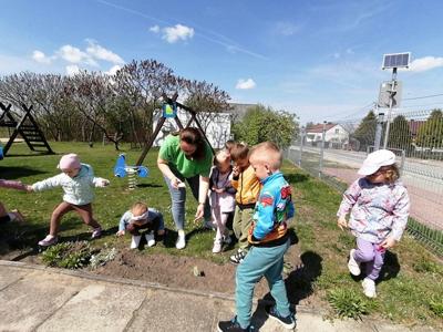 Podczas obchodów Dnia Ziemi przedszkolaki z grupy ,,Pszczółki” wysłuchały opowiadania o naszej planecie obejrzały krótką prezentację, tańczyły do piosenki pt. ,,Leśne duszki”, zastanawiały się co dobrego możemy zrobić dla naszej planety? W tym dniu dzieci poznawały zasady, których należy przestrzegać, aby chronić środowisko naturalne, uczyły się poprawnego segregowania śmieci, wysłuchały inscenizacji wiersza pt. ,,Sznurek Jurka” L. Szołdry oraz poznały trudne słowo recykling♻️Następnie czekała na nich zabawa przy stolikach: układanie puzzli, dopasowywanie cieni i połówek obrazka, labirynty, przeliczanie, rysowanie po śladzie. Zwieńczeniem naszego Dnia Ziemi było zasadzenie krzewu: Złotlin japoński oraz kwiatu Jeżówka w naszym ogrodzie przedszkolnym. To jednak nie koniec prac ogrodowych ponieważ dzieci zasiały jeszcze kwiaty m.in. : maciejkę, nagietka, lawendę, nasturcję niską. Na osłodę po ciężkiej pracy zrobiliśmy sobie przerwę na zabawę. Natomiast dzieci z grupy „Motylki” rozwiązywały quiz wiedzy ekologiczno – przyrodniczej oraz krzyżówkę. Układały zdania o tym jak postępuje przyjaciel Ziemi. Grały w zgaduj zgadula. Rysowały wesołe i smutne drzewa i uzasadniały dlaczego takie są. Na koniec dzieci wykonały dyplomy przyjaciela Ziemi. Wszystkie te działania miały na celu podkreślenie, jak ważne jest nasze zaangażowanie w działania na rzecz ochrony naszej planety oraz rozbudzenie w dzieciach potrzeby dbania o naturę.