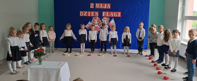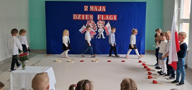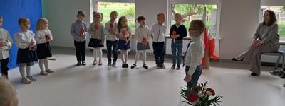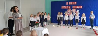 6 maja odbyła się w przedszkolu uroczysta akademia z okazji Dnia Flagi. W odświętnie udekorowanej sali dzieci z grupy Pszczółki przedstawiły program artystyczny. Wszystkie dzieci z powagą i w pozycji na baczność odśpiewały hymn narodowy. Potem były wiersze i piosenki patriotyczne. Była to dla wszystkich przedszkolaków wspaniała lekcja patriotyzmu, kształtująca u dzieci szacunek dla symboli narodowych oraz poczucie dumy z przynależności do ojczyzny. Na koniec pani dyrektor Ilona Słupczyńska podziękowała dzieciom i pani Marzenie za piękną uroczystość.