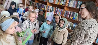 13 maj przedszkolaki postanowiły wybrać się do biblioteki, aby złożyć życzenia pani Jagodzie bibliotekarce z Biblioteki Publicznej w Kozłowie z okazji Dnia Bibliotekarza. Wręczyły własnoręczne wykonane laurki i bukiet kwiatów. Pani Jagodo dziękujemy za współpracę i życzymy radości oraz satysfakcji z pracy.