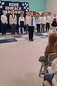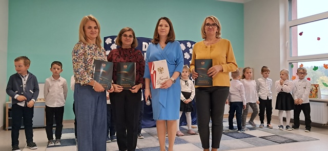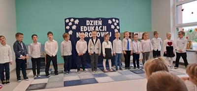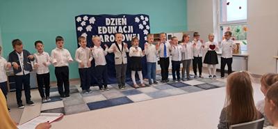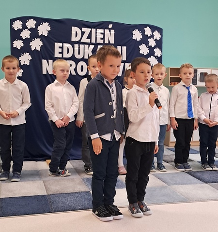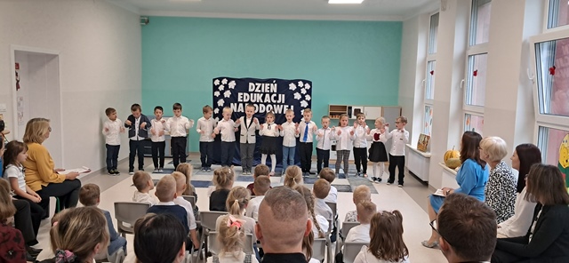 Dzień Edukacji Narodowej to szczególny dzień dla wszystkich dzieci, pracowników pedagogicznych i niepedagogicznych naszego przedszkola. Przedszkolaki z grupy Biedronki wierszem i piosenką dziękowały Pani Dyrektor, nauczycielom i pracownikom przedszkola za: uśmiech, życzliwość, trud włożony w ich wychowanie, za opiekę, dobre rady, czyste sale, wszelkie naprawy oraz smaczne posiłki. Po części artystycznej Pan Dyrektor podziękował małym artystom za występ oraz złożyła serdeczne życzenia, dziękując za trud codziennej pracy wszystkim pracownikom przedszkola.