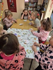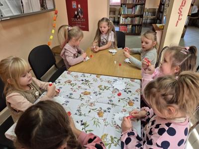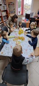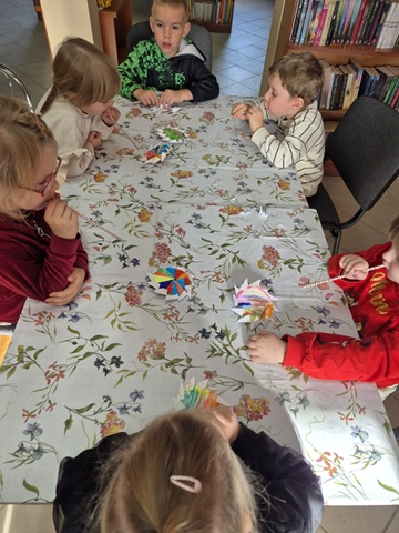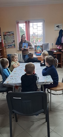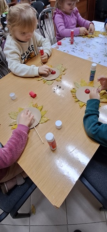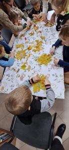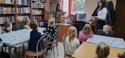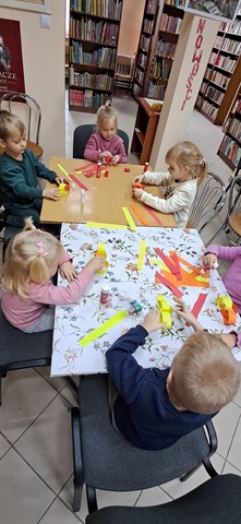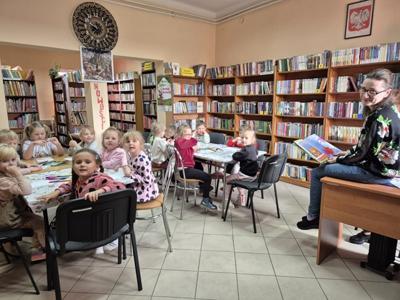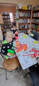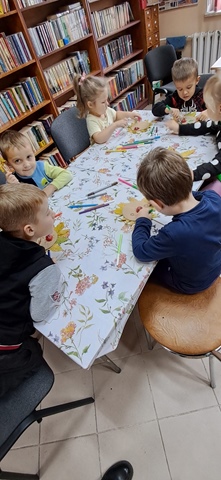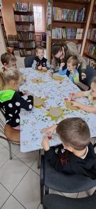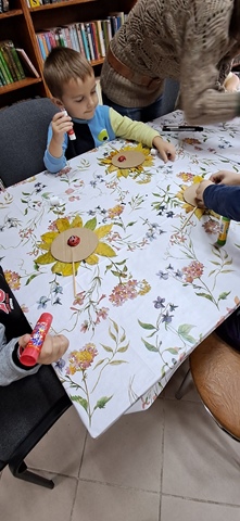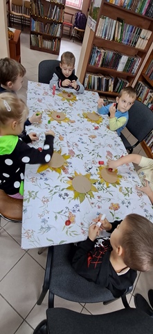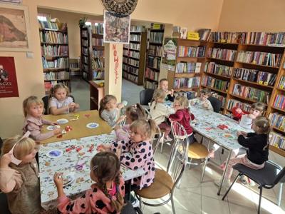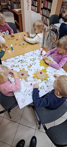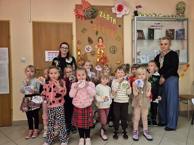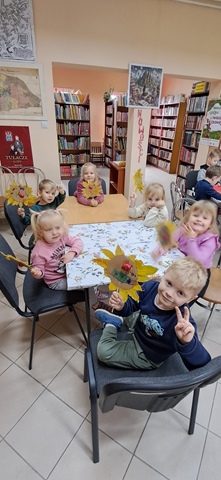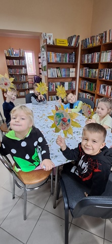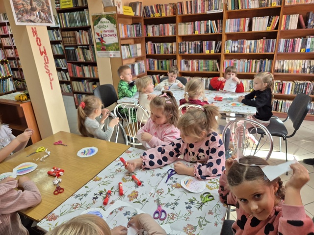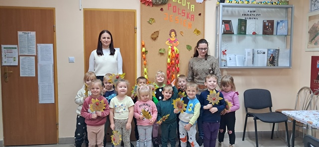 W dniu 28 i 29 października w bibliotece w Kozłowie odbyło się jesienne spotkanie przedszkolaków z bibliotekarką panią Jagodą. Po wysłuchaniu wiersza Doroty Gellner „Jesienny pociąg” dzieci z grupy Pszczółki wykonały słonecznik z jesiennych liści na którym była biedronka z łupiny orzecha. Dodatkowo dzieci robiły jesienną sukienkę z kolorowych pasków papieru. Zaś dzieci z grupy Motylki rozmawiały o oznakach jesieni i wysłuchały wiersz Ludwika Jerzego Kerna „Panie wietrze”. Potem wykonały papierowe wiatraki, które wprawiły w ruch dmuchając w nie przez słomkę.