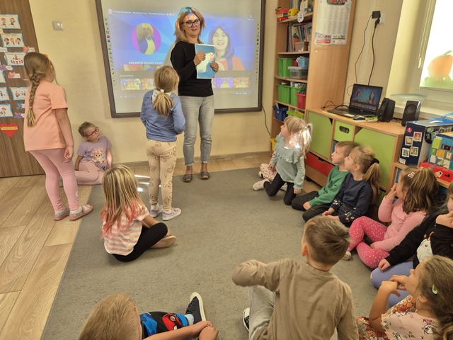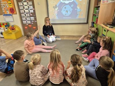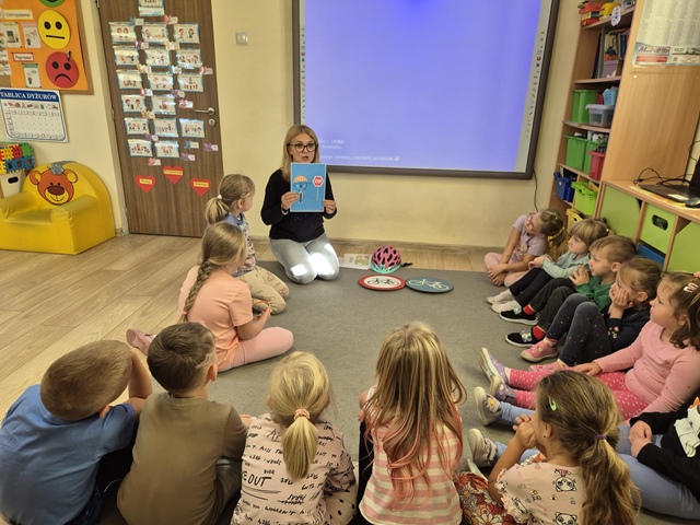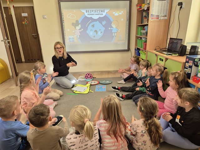 Podczas zajęć dzieci miały okazję wysłuchać audiobajek o przygodach Smartusia – sympatycznej, niebieskiej planetki, która trafiła na Ziemię. Razem z Teosiem i Julią – dwójką rezolutnych przedszkolaków – poznawał świat i dowiadywał się, jak zadbać o bezpieczeństwo w ruchu drogowym.
