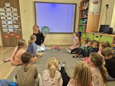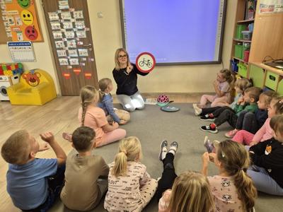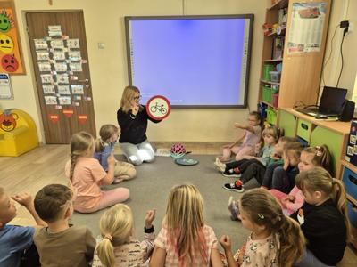 W trakcie zajęć dzieci uczestniczyły w rozmowach dotyczących bezpiecznego poruszania się na rowerze. Omówiono najważniejsze aspekty, które każdy młody rowerzysta powinien znać, aby zapewnić sobie i innym bezpieczeństwo na drodze. Szczególną uwagę poświęcono temu, jakie elementy powinien posiadać dobrze wyposażony rower, by spełniał wymagania bezpieczeństwa – dzieci dowiedziały się, że każdy rower powinien mieć m.in. sprawne hamulce, oświetlenie, odblaski oraz dzwonek. Dzieci omówiły także zasady bezpiecznego poruszania się na rowerze. Dowiedziały się, w jaki sposób prawidłowo poruszać się po drogach i ścieżkach rowerowych, zachowując ostrożność wobec innych użytkowników drogi. Ważnym punktem zajęć była również nauka wybranych znaków drogowych, które są kluczowe dla bezpiecznej jazdy na rowerze.