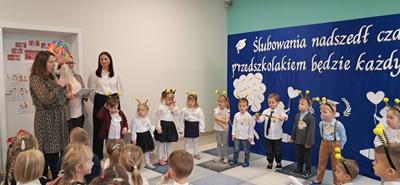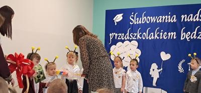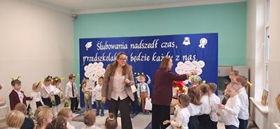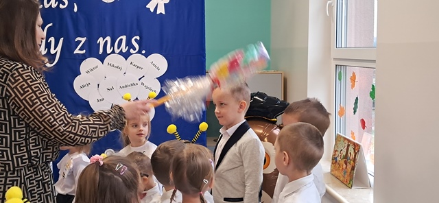 20 listopada w naszym przedszkolu odbyło się Pasowanie na przedszkolaka. Było to bardzo ważne wydarzenie w życiu dzieci, rodziców, a także nauczycieli. Stworzyło możliwość prezentacji pierwszych umiejętności i wiadomości zdobytych przez dzieci w przedszkolu. Rodzice obecni na tej uroczystości, mogli podziwiać swoje pociechy w ich prezentacjach artystycznych. Po uroczystym pasowaniu dzieci otrzymały pamiątkowe dyplomy, małe upominki i zrobiono pamiątkowe zdjęcia.