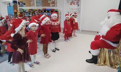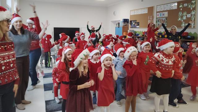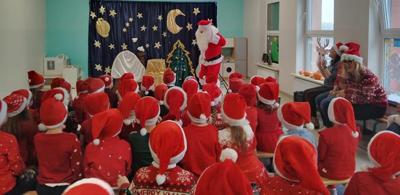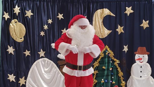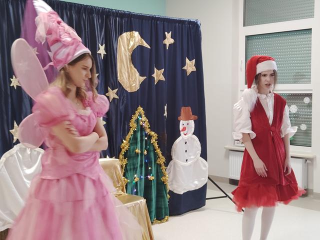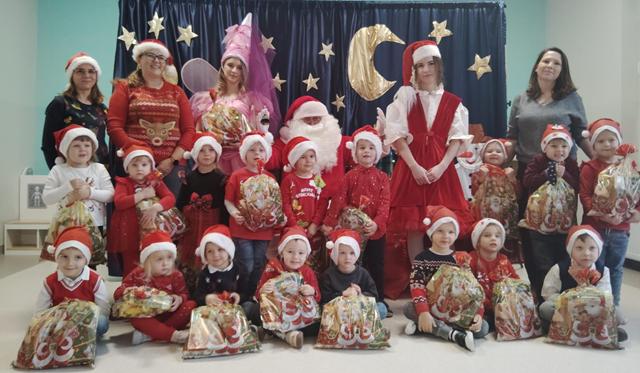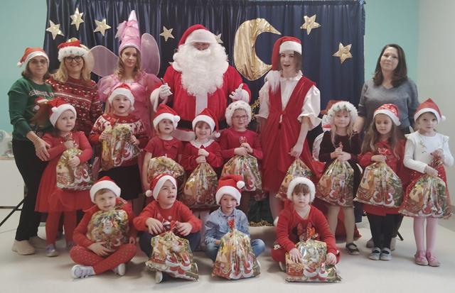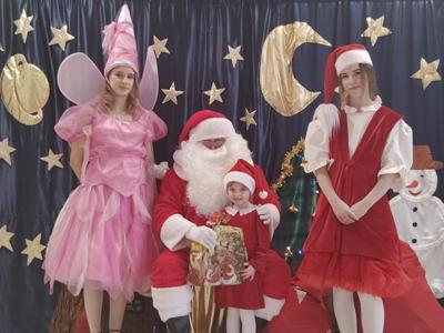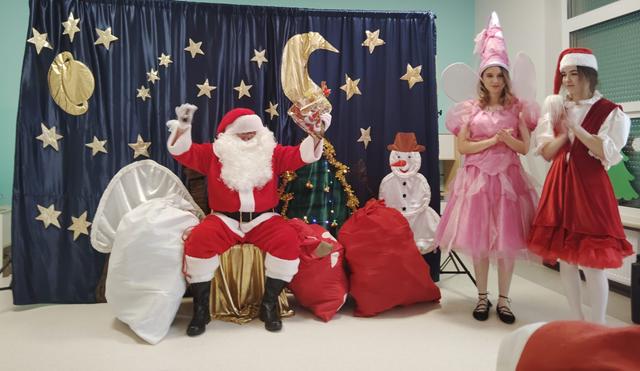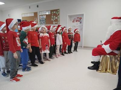 Mieliśmy niemały kłopot ponieważ długo oczekiwany Św. Mikołaj słodko zasnął i ani myślał się obudzić, żeby rozdać nam prezenty. Na szczęście Wróżka starała się zażegnać kłopotom i z naszą pomocą obudziła śpiocha. My zaśpiewaliśmy dla Mikołaja, zatańczyliśmy i powiedzieliśmy wiersz. W zamian otrzymaliśmy upragnione prezenty. To wszystko wydarzyło się podczas spektaklu "Świąteczne problemy".