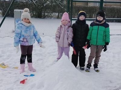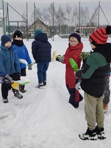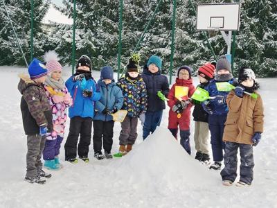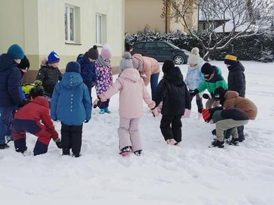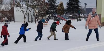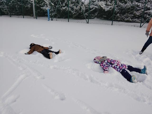 W piątek 9 stycznia przedszkolaki z grupy Biedronki zrealizowały kolejne zadanie z Ogólnopolskiego Programu Edukacyjnego „Wyzwania Teodora” – odkrywcy Antarktydy. Dzieci oglądały film edukacyjny o zwierzętach Antarktydy. Rozmawiały też o pracy jaką wykonują naukowcy w stacjach polarnych. Później to przedszkolaki zostały naukowcami: badały głębokość śniegu i sprawdzały, czy z suchego śniegu można ulepić śnieżkę. Na koniec usypały lodowce i robiły aniołki na śniegu.