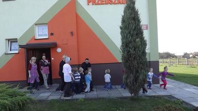 Dnia 29 października w przedszkolu przeprowadzona została próbna ewkuacja dzieci i pracowników placówki.Dzieciom przedstawione zostały zasady ewkuacji i bezpieczeństwa przeciwpożarowego.Ewakuacja przebiegła bardzo sprawnie, spokojne z zachowaniem wszystkich procedur. Nad sprawnym przebiegiem akcji czuwał Druh Piotr Malinowski-Prezes Zarządu Oddziału Miejsko-Gminnego Związku Ochotniczych Straży Pożarnych RP w Małogoszczu. Głównym celem próbnej ewakuacji było zapoznanie dzieci i przypomnienie pracownikom przedszkola prakycznego zastosowania procedur dotyczących zachowania się w przypadku wybuchu pożaru.