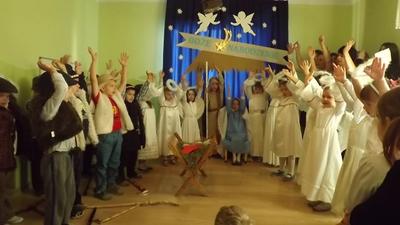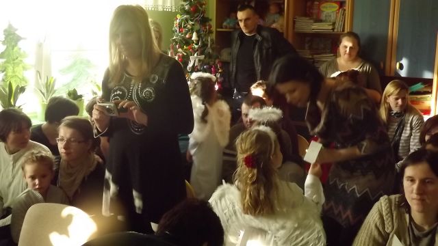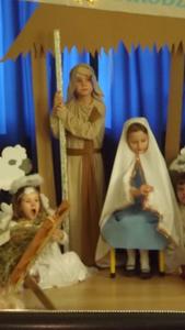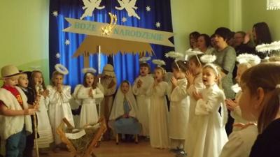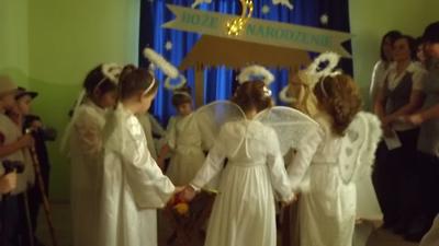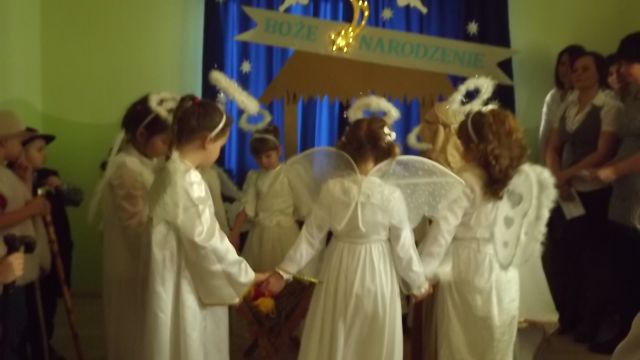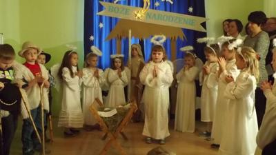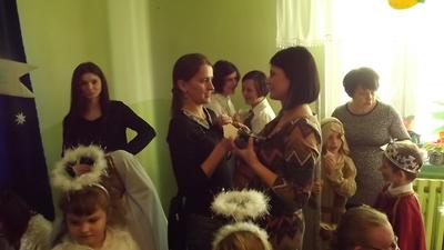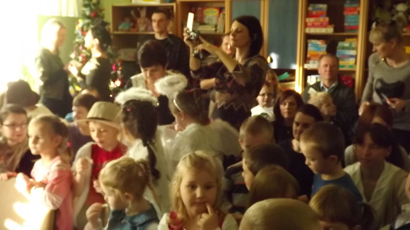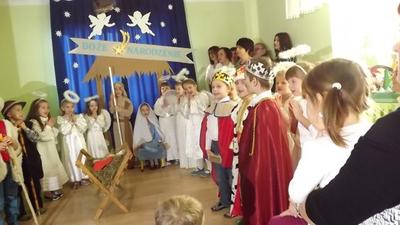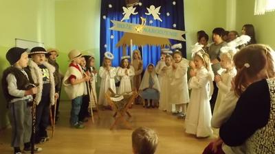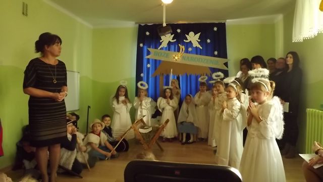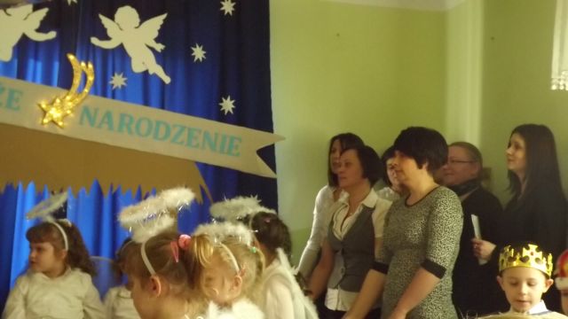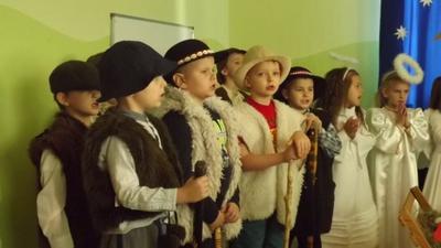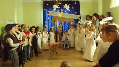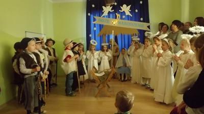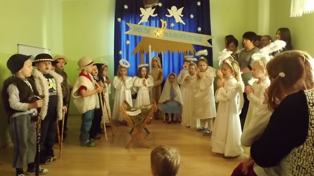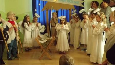19 grudnia dzieci z grupy II wystawiły Jasełka swoim najbliższym, zaproszonym gościom i młodszym kolegom.W pięknej scenografii i świątecznej atmosferze dzieci odegrały swoje role.Mali aktorzy we wspaniałych strojach prezentowali się doskonale.Mamy Naszych przedszkolaków śpiewały kolędy.Na zakończenie wszyscy zgromadzeni wysłuchali świątecznych życzeń dyr. Wandy Bodzioch.Końcowym akcentem uroczystości były wzajemne życzenia i łamanie się opłatkiem.