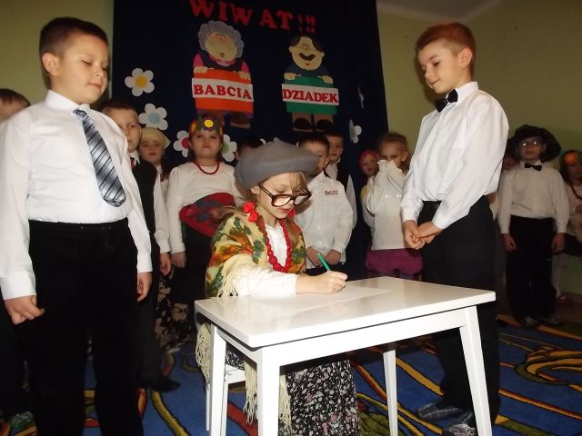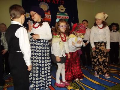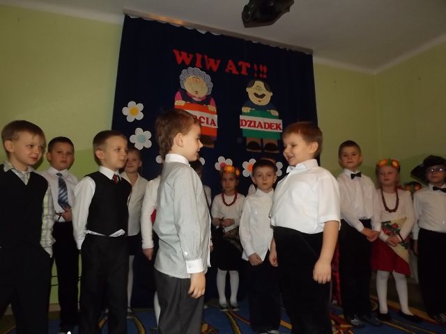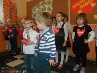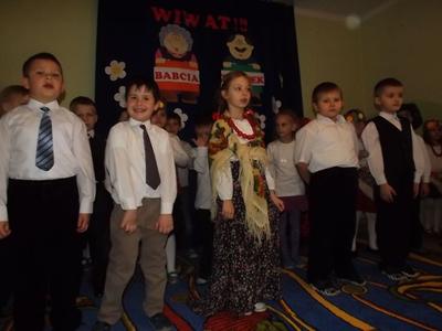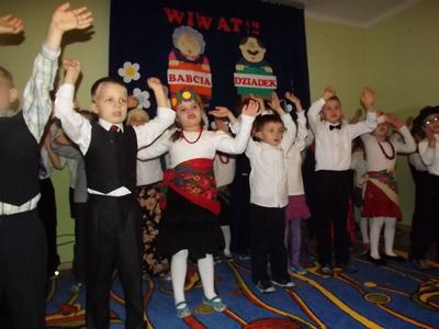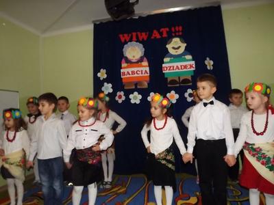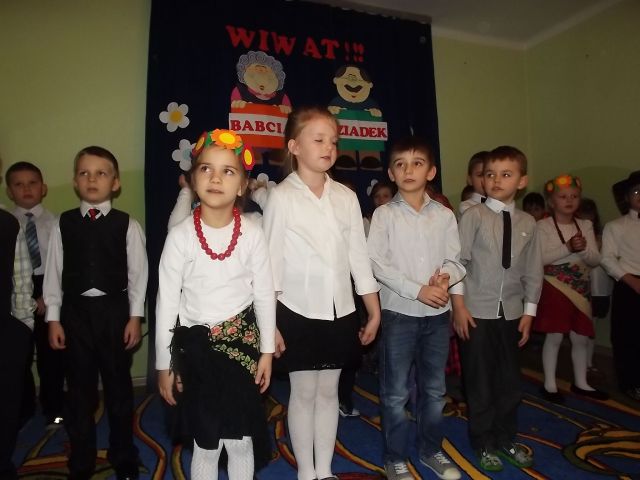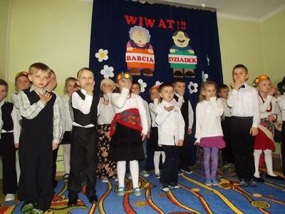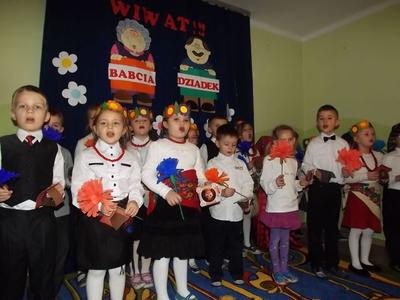 21 stycznia w przedszkolu odbyła się uroczystość z okazji Dnia Babci i Dziadka, którą rozpoczęla pani dyrektor Wanda Bodzioch,serdecznie witając przybyłych gości. Dzieci zaprezentowały program artystyczny:były wiersze, piosenki, humory i tańce "Grozik i Trojak".Babcie i dziadkowie byli dumni ze swoich wnucząt. Spotkanie zakończono słodkim pozęstunkiem i miłymi rozmowami i wspomnieniami.