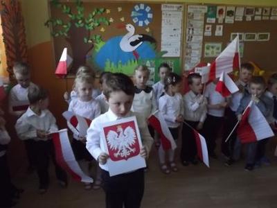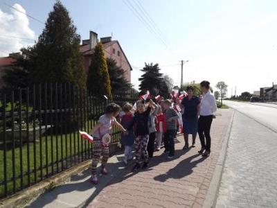 30 kwietnia w przedszkolu dbyła się uroczystość a okazji 2 Maja - Dnia Flagi Rzeczypospolitej Polskiej.Tego dnia przedszkolaki ubrały się odświętnie i każde miało ze sobą polską flagę. Zaprezentowały program artystyczny: były to wiersze, piosenki o tematyce patriotycznej. Następnie przedszkolaki przemaszerowały drogami naszej miejscowości przypominając tym samym o święcie, które w naszym kraju jest jednym z najmłodszych.Dzieci były dumne maszerując z biało - czerwonymi flagami.