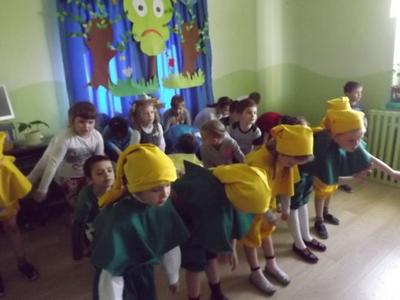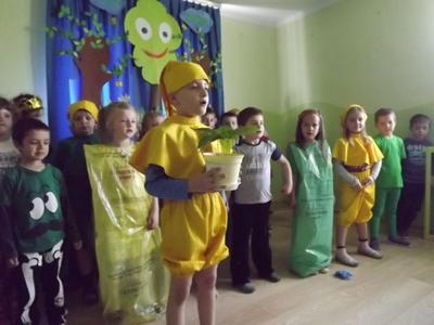 Dnia 29-04-2014r grupa dzieci 5-6 letnich przedstawiła inscenizację o treści ekologicznej.Celem uroczystości była popularyzacja haseł i działań na rzecz ochrony przyrody, uświadomienie dzieciom,że ochrona środowiska jest obowiązkiem każdego człowieka. Dzień ten był również okazją do rozstrzygnięcia konkursu plastycznego "Drzewo" W konkursie brało udział 25 dzieci z grupy I i II.Laureatami konkursu zostali: