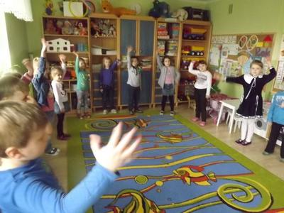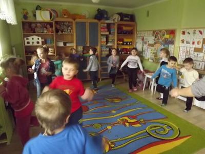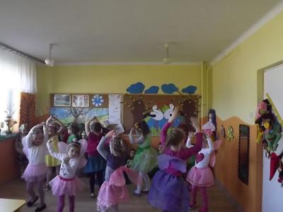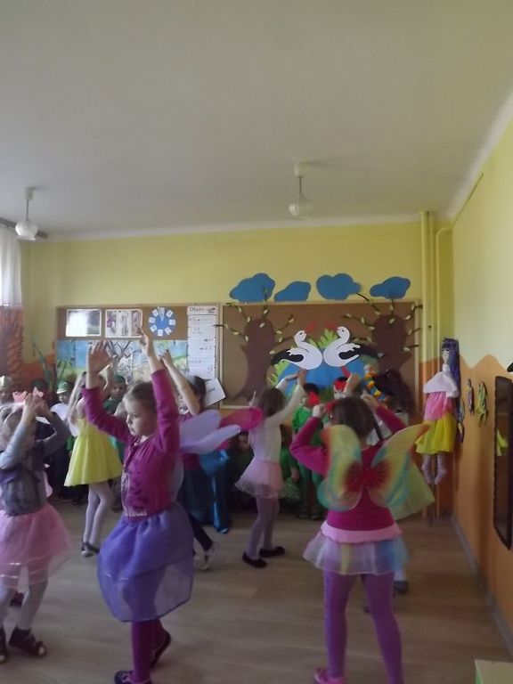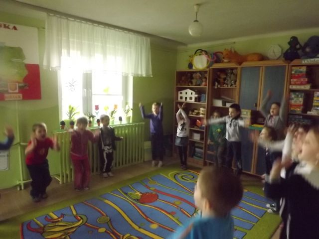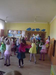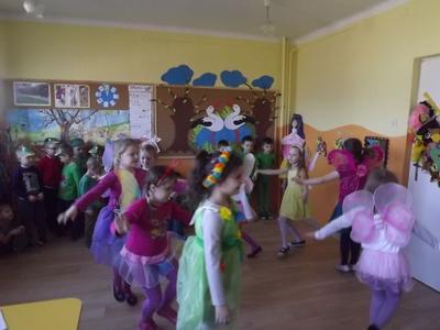 Taniec przy muzyce rozwija koordynację ruchową dziecka,pozwala na gimnastykowanie całego ciała,rozwija wiarę w pewność siebie.Dzieci uwielbiająruch, taniec,niczym nieskrępowaną swobodę, podczas obcowania z muzyką.Nasze Przedszkolaki z grupy "Muchomorki"(5-6 latki)przejawiają zainteresowania taneczne i lubią tańczyć.Często podczas zajęć wykonują proste układy taneczne jak również podczas uroczystości przedszkolnych. Na zdjęciach prezentujemy zabawę taneczną "Boogie-Woogie" wykonaną 19-03-2014r, oraz układ taneczny "Taniec motyle" i "Żabki" wykonane na uroczystości powitania wiosny 21-03-2014r