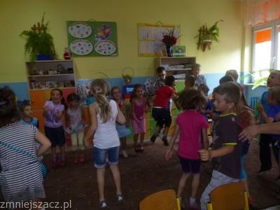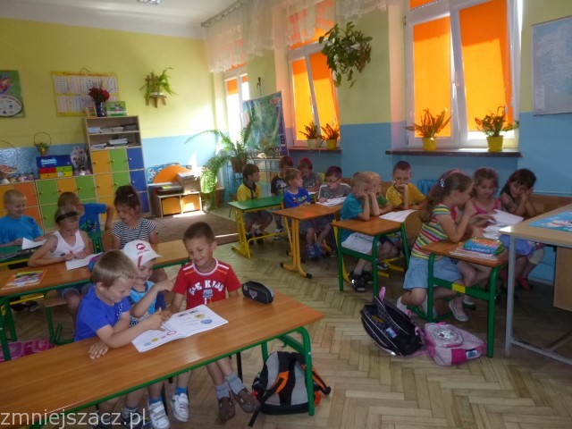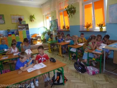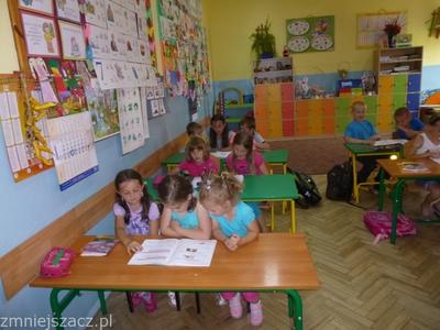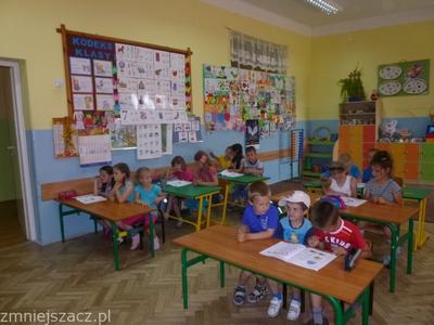 Ogladały bajkę "Kot w butach" wystawianą przez uczniów szkoły. Brały udział w "Andrzejkach" organizowanych przez wychowawcę klasy pierwszej. Zwiedziły "Izbę pamieci, Bibliotekę szkolną, salę gimnastyczną" Dzieci przedszkolne wystawiły uczniom klasy pierwszej część artystyczną pt. "Pożegnanie jesieni".W okresie przedświątecznym przedszkolaki z uczniami klasy pierwszej wykonywały pisanki Wielkanocne. Dnia 12-06-2013 dzieci 5-6 letne brały udział w grach i zabawach ruchowych na boisku szkolnym z uczniami klasy pierwszej.13-06-2013 dzieci poznały przyszłą wychowawczynię, a 19-06-2013 uczestniczyły zajęciach lekcyjnych klasy pierwszej "Już niedługo wakacje"