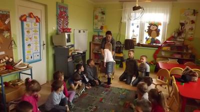 W pierwszym półroczu roku szkolnego 2013/2014 dzieci 5-6 letnie były obserwatorami uroczystości,akademii szkolnych:17 października "Ślubowanie klasy pierwszej",11 listopada "Dzień Niepodległości".6 listopada dzieci zwiedzały w szkole"Izbę pamięci", 28 listopada przedszkolaki zaprosiły klasę pierwszą do przedszkola na "Andrzejki", 6 grudnia przedszkolaki ogladały bajkę "Jaś i Małgosia" wystawianą przez uczniów szkoły.